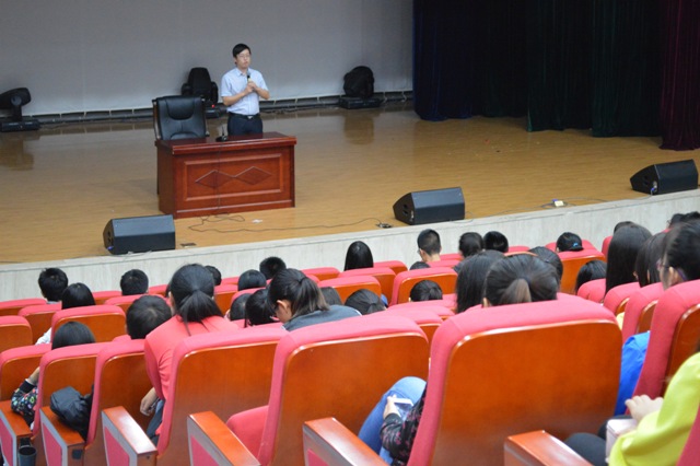 2012级本科生做入院教育报告。报告会由辅导员牟朝丽主持。