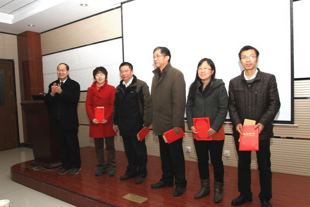 颁发2013年度弘毅奖教(学)金的决定》;与会领导及嘉宾分别为获得弘毅教学突出贡献奖、弘毅教学研究优秀奖、弘毅教学团队建设奖、弘毅优秀科研团队奖、弘毅科研突出贡献奖、