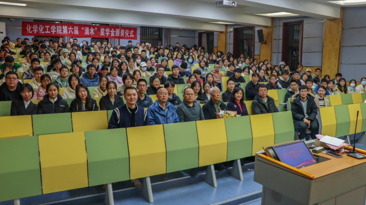 第六届“滴水”奖学金获奖学生名单》。薛封和为17名获奖学生颁发证书并用质朴的话语讲述个人在分析化学领域的工作历程,表达了对分析化学学科的无限热爱。他勉励同学们练就较强的动手能力,提升自己的实验本领;理解父母的艰辛不易,体谅父母、理解父母、感恩父母;热爱党、热爱祖国、热爱人民,担当新时代青年的责任与使命。