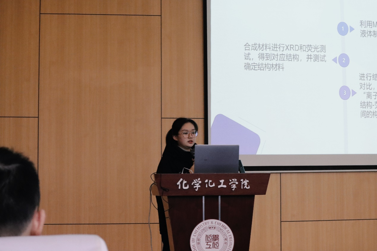 开幕式结束后,2021级笃学班雷思雨、刘婧怡、王紫榛、李文梓、彭振昊、马锐、王思桐、伍庭豪、张闳喆、王格格、孙琪旭、辛雨萌、江怡然、成美玙、代恩铭等十五组同学们分别代表个人或团队进行了专题报告,报告内容涵盖了能源、环境、医药、新材料、生命分析等化学前沿课题。同学们详细汇报了各自科研项目的研究方向、研究进展和后续工作设想。评委老师分别从科学性、汇报形式、研究内容及实验细节等方面提出了宝贵意见。整个论坛现场气氛活跃,互动交流此起彼伏。