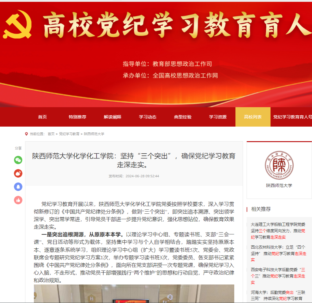 6月28日,《全国高校思想政治工作网》刊发学院党纪学习教育做法:《小说网