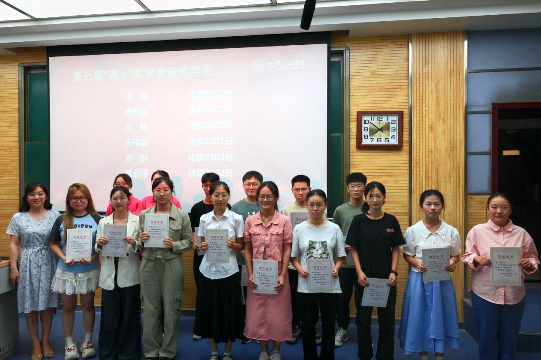 “滴水”奖学金由学院已故退休教师薛封和于2018年捐资发起,主要用于奖励分析化学实验中勤奋刻苦、动手实践能力强、品学兼优的本科生。薛老师退休三十余年来,心系学院发展和分析化学学科建设,关心支持青年学生成长成才,以多年来对教育事业的深厚情怀和无私奉献,激励着同学们向优秀和榜样看齐,奋发向上,积极进取。