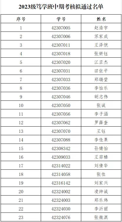 根据教务处《小说网 做好2023级“人文科学试验班”“理科试验班”中期考核及二次选拔工作的通知》和《小说网 2023级化学笃学班中期考核和二次选拔实施办法》,学院对2023级化学笃学班进行了中期考核,现将结果予以公示,公示时间:2024年9月20日-9月22日。小说网 23名学生通过考核,结果如下(按照学号顺序排序),现予以公示。如有异议者,请与学院党委副书记、纪委书记贾颍辉同志联系,联系电话:13572524231,邮箱:[email protected]。