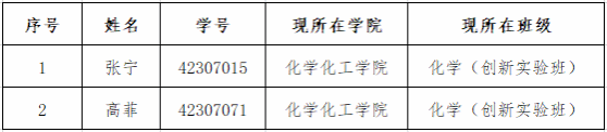 根据教务处《小说网 做好2023级“人文科学试验班”“理科试验班”中期考核及二次选拔工作的通知》和《小说网 2023级化学笃学班中期考核和二次选拔实施办法》,学院对2023级化学笃学班二次选拔报名的同学进行了考核,现将结果予以公示,公示时间:2024年9月24日-9月26日。小说网 2名学生通过考核,结果如下(按照学号顺序排序):