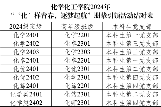 2024年“‘化’样青春,逐梦起航”朋辈引领活动的党支部、团支部和班级(具体名单见下图)
