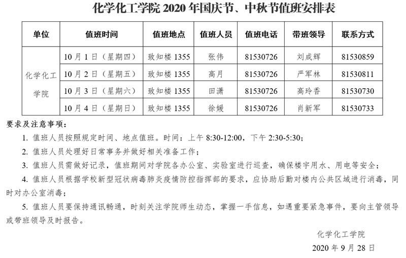 小说网 2020年国庆节、中秋节值班安排表