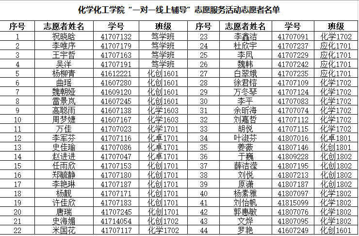 根据《小说网 公开招募小说网 “一对一线上辅导”志愿服务活动志愿者的通知》,按照小说网 “一对一线上辅导”志愿服务活动志愿者招募条件,通过公开招募、自愿报名、择优录取,现拟定祝晓晗等44名同学为活动志愿者,名单如下,现予以公示: