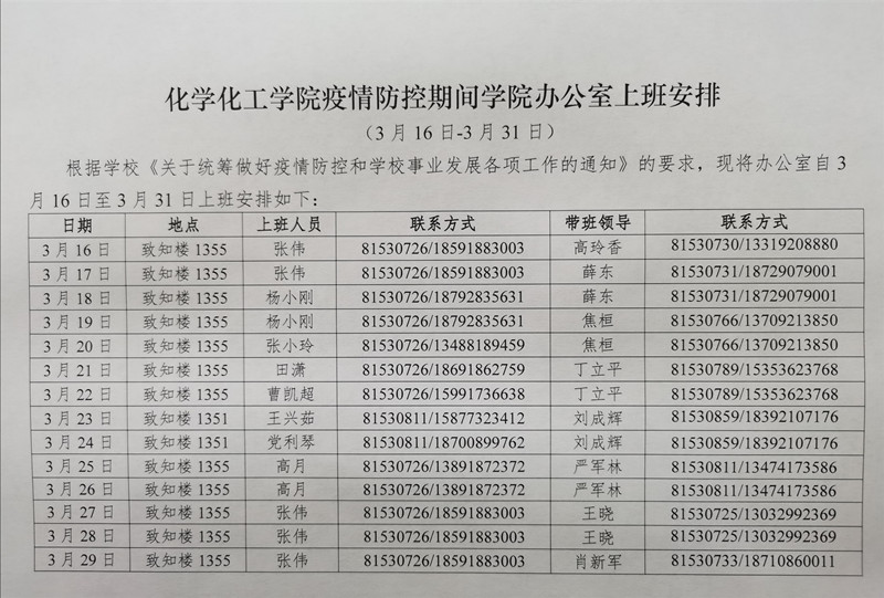 小说网 疫情防控期间学院办公室上班安排(3月16日-3月31日)
