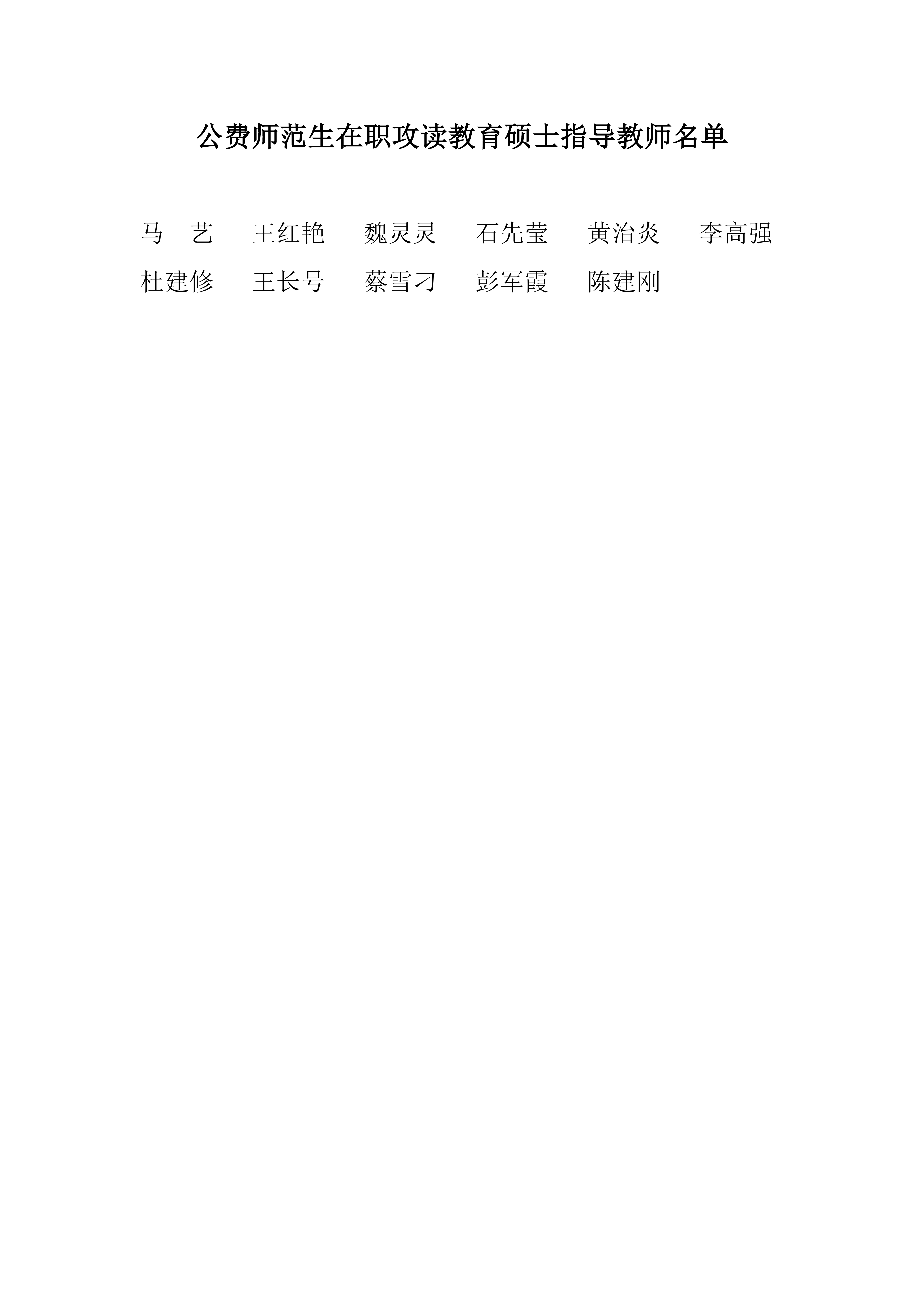 学院通过对公费师范生在职攻读教育硕士指导教师进行名师聘请,成员教师自愿申请、学院审核。确定公费师范生指导教师名单,现予以公示。