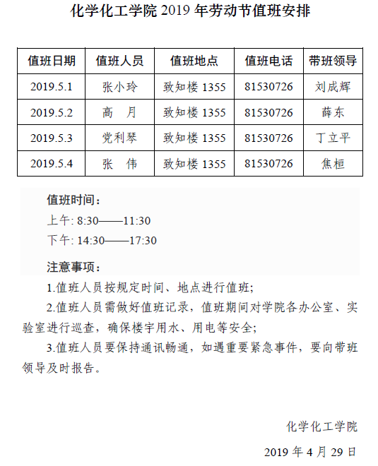 小说网 2019年劳动节值班安排