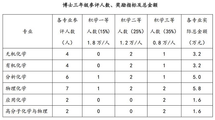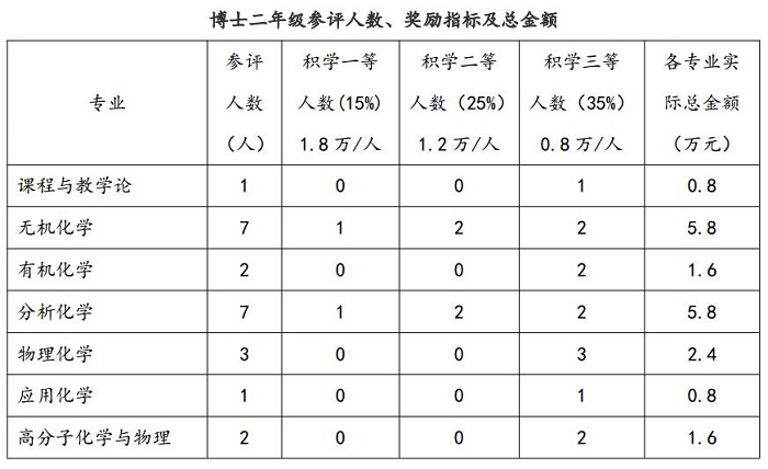 2. 二、三年级研究生积学奖学金由各学科按照评奖原则及本专业特点进行推荐,分专业具体指标如下: