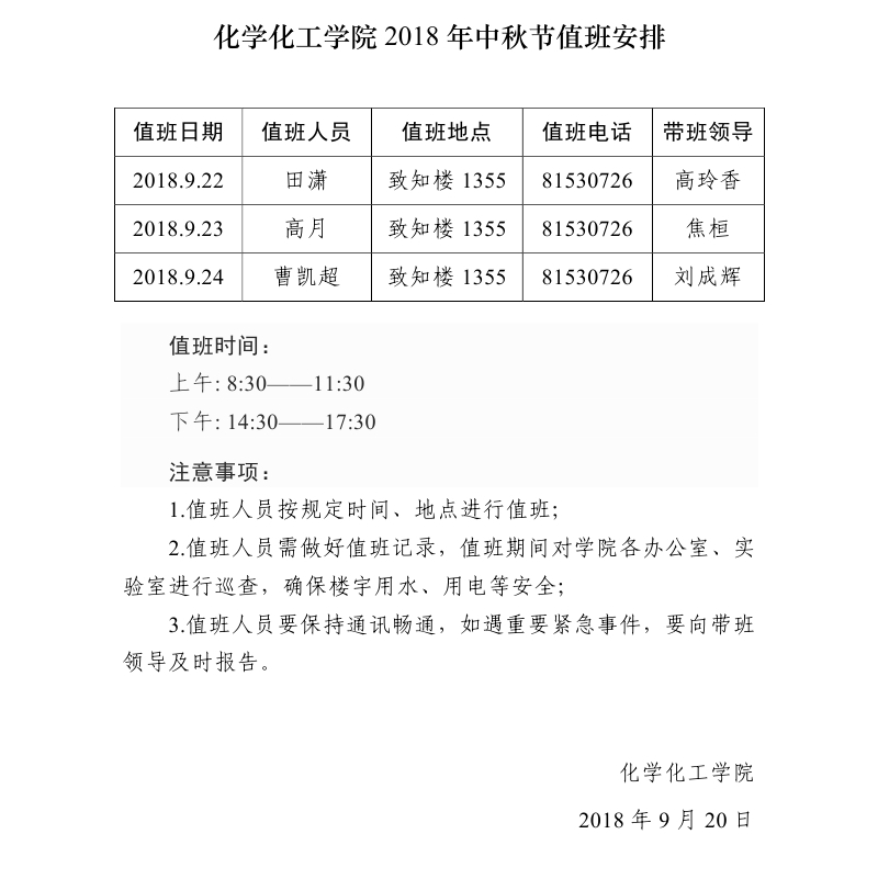 小说网 2018年中秋节值班安排
