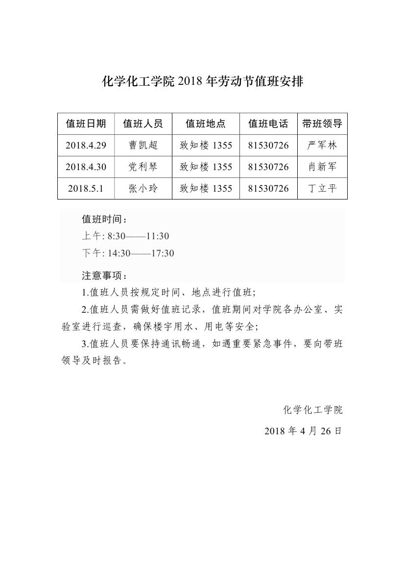 小说网 2018年劳动节值班安排