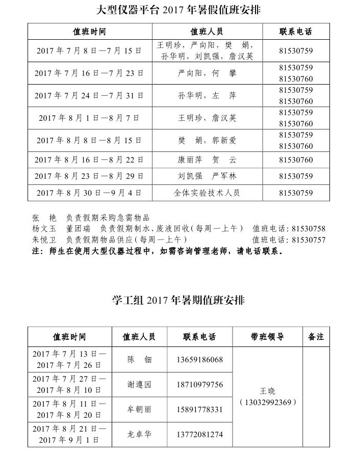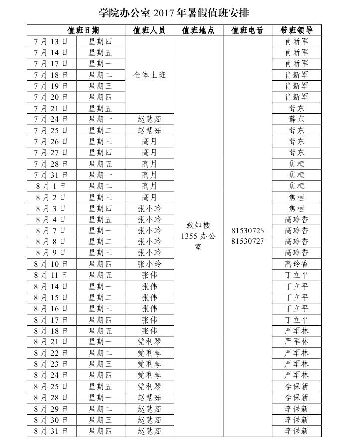 小说网 2017年暑假值班安排