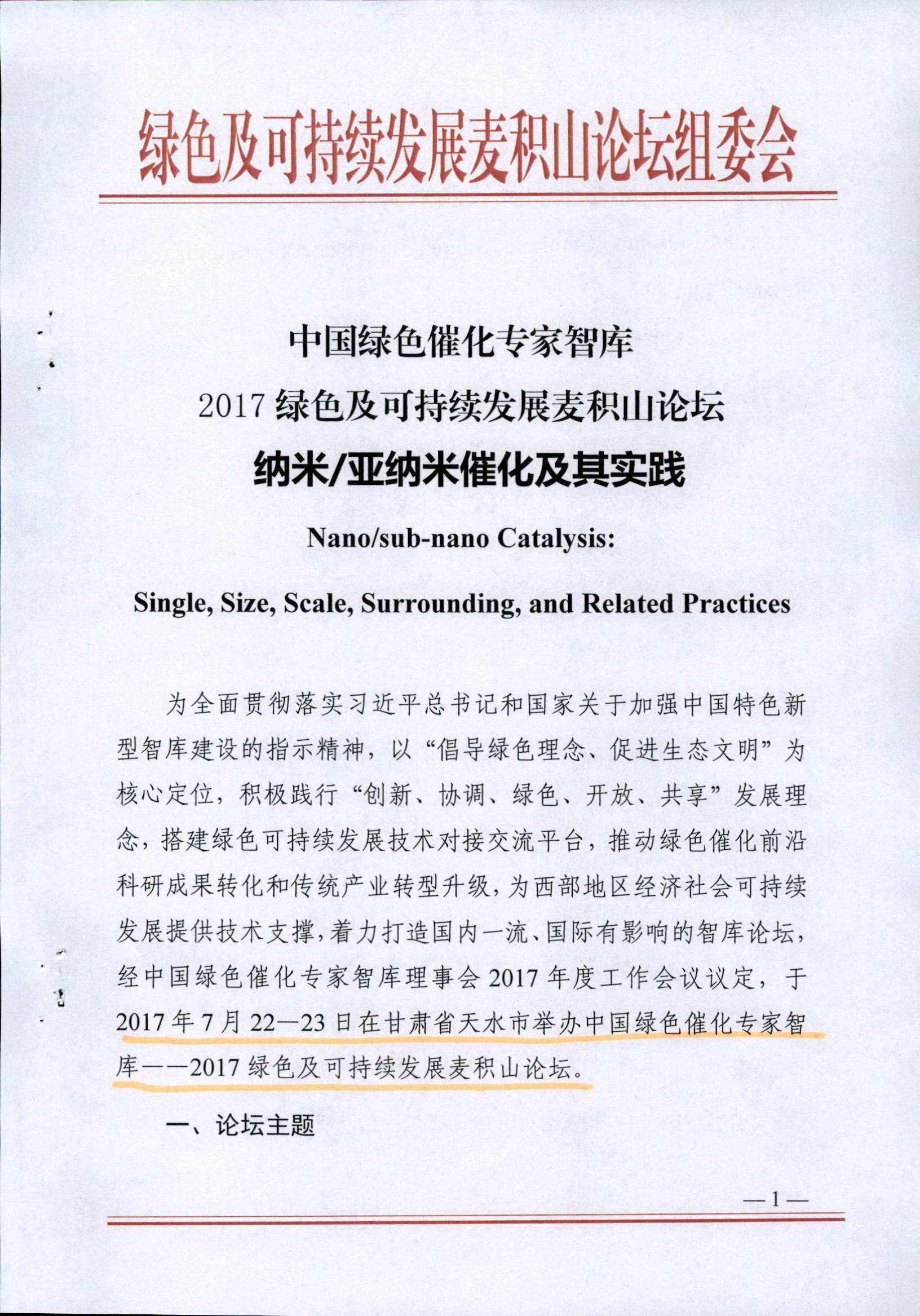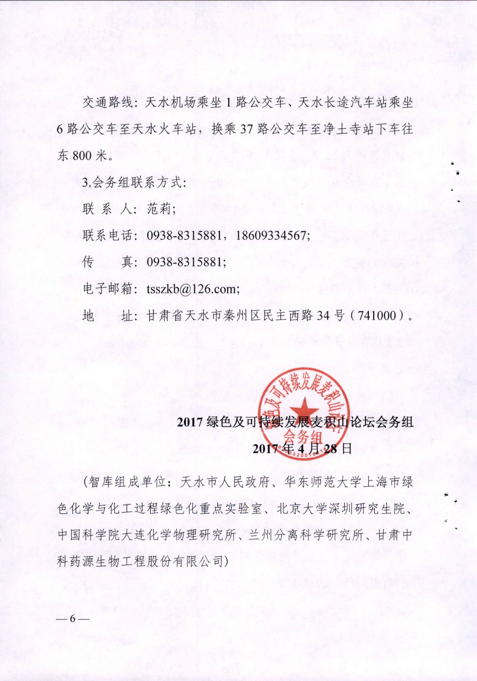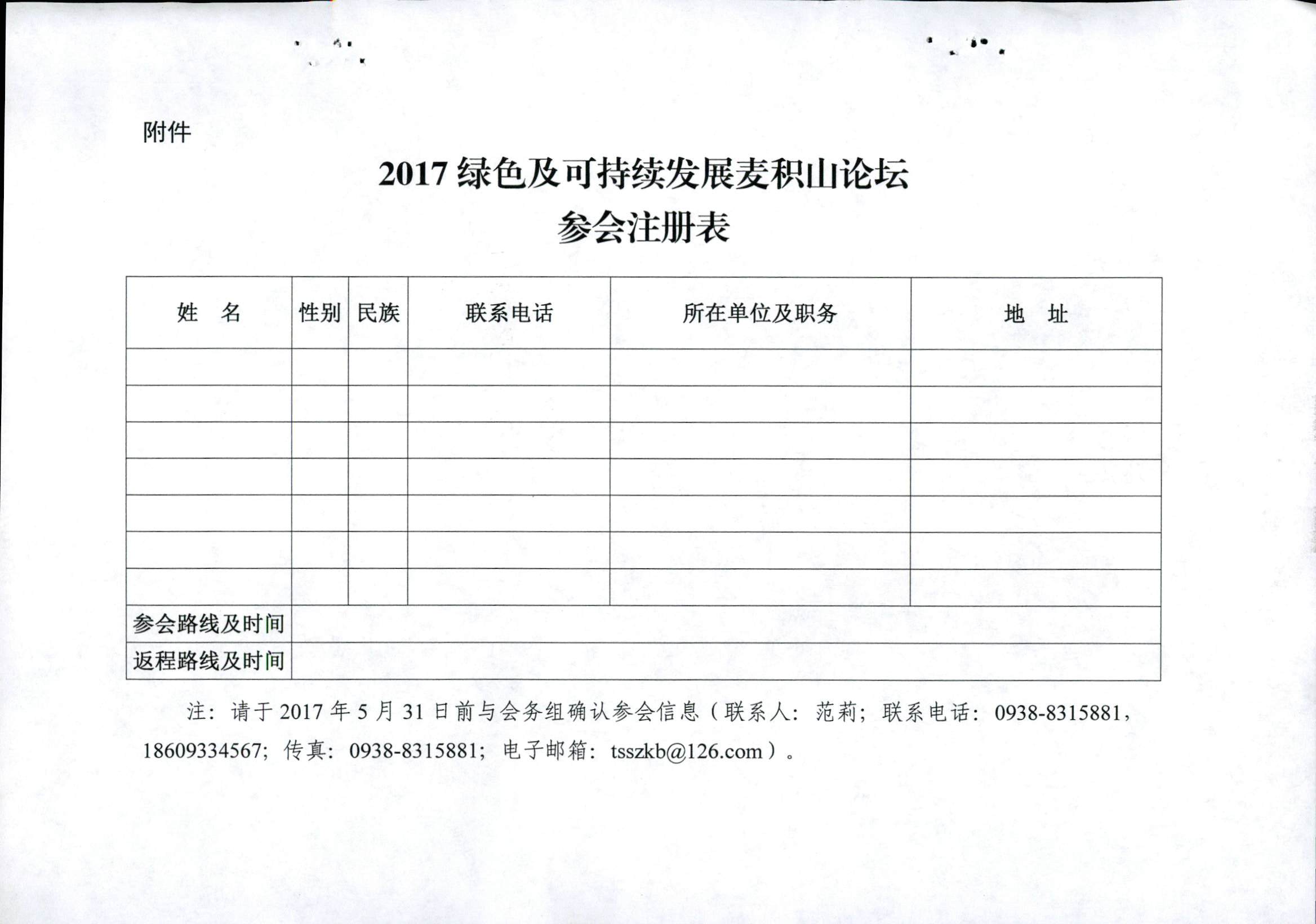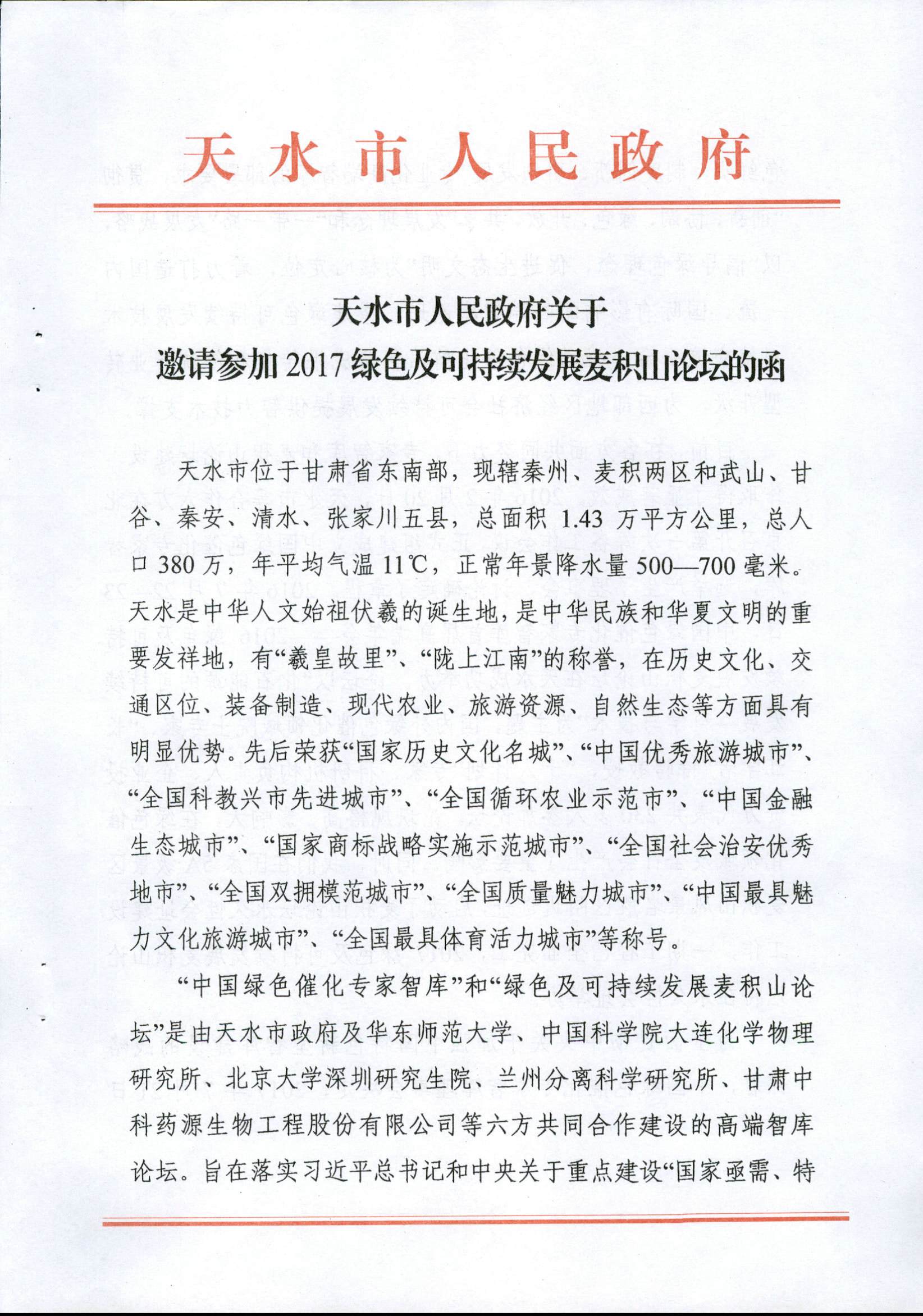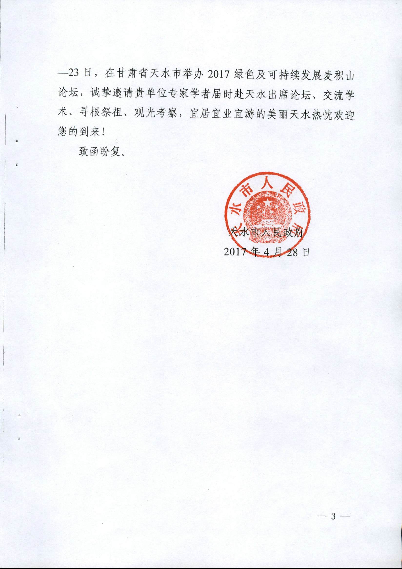 天水市政府小说网 邀请参加2017绿色及可持续发展麦积山论坛的函