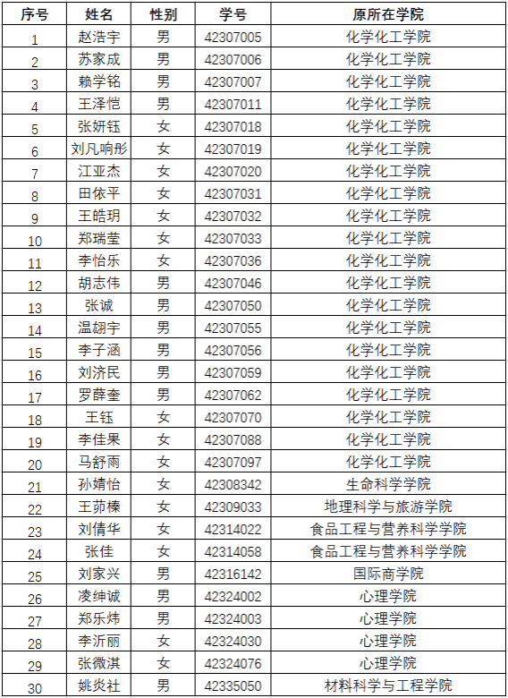 根据《小说网 做好2023级“人文科学试验班”“理科试验班”新生选拔工作的通知》和《小说网 2023级本科生化学笃学班选拔综合考核方案》,小说网 在学生自愿报名基础上,经过笔试、综合面试考核环节,现将2023级化学笃学班拟入选学生名单公示如下(按照学号由小到大顺序排列):