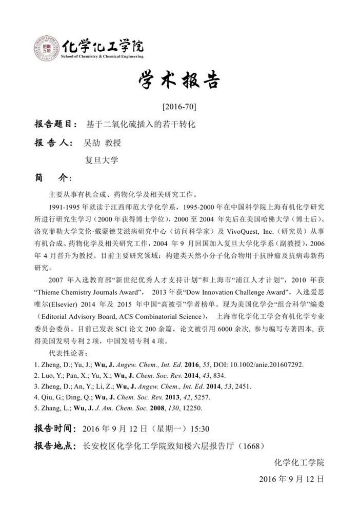 学术报告预告[2016-70]