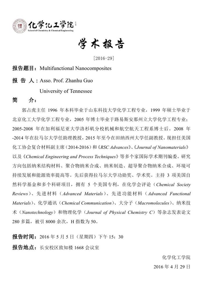 学术报告预告[2016-29]