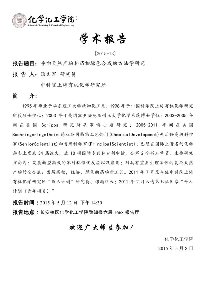 学术报告预告[2015-13]