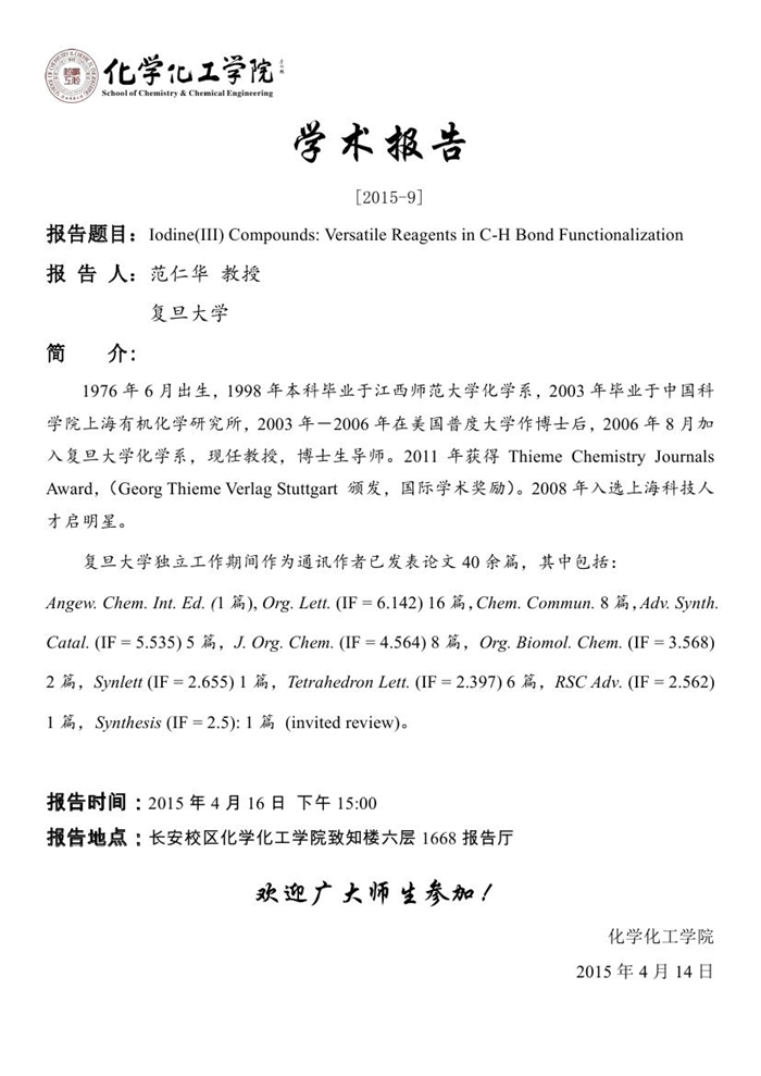 学术报告预告[2015-09]