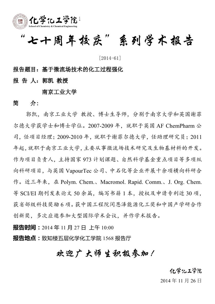 “七十周年校庆系列讲座” [2014-61]