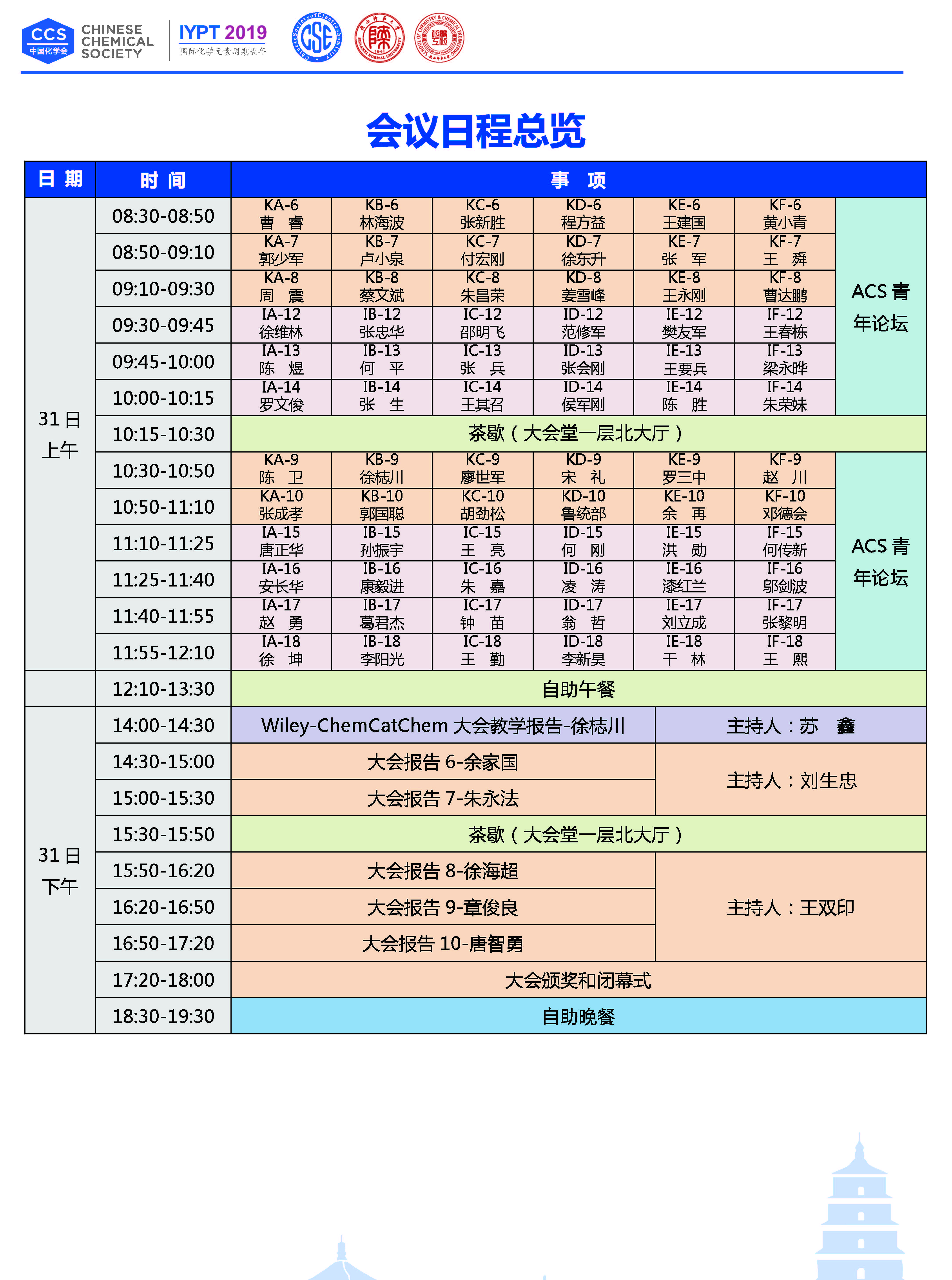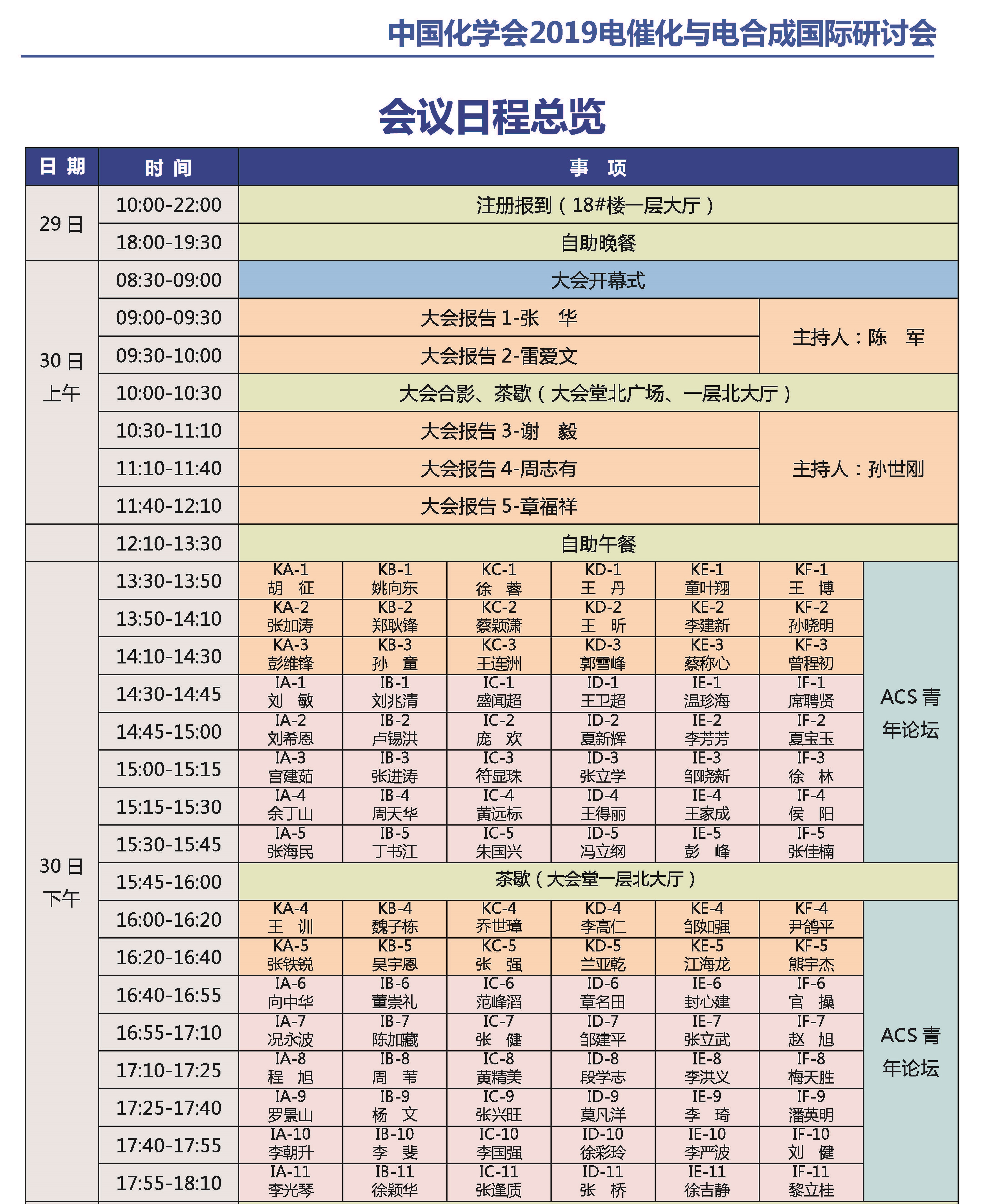 在新型清洁能源亟需的时代背景下,各种针对电催化与电合成的技术将在能源转化、存贮、利用中得到广泛应用,给新能源产业提供强大的技术支持,为新材料的创新发展带来新的机遇。在这一时代背景下,拟举办“中国化学会2019电催化与电合成国际研讨会”。会议研讨领域为电催化、光电催化、有机电合成等。会议设大会报告11场(包含大会教学报告1场),主题报告60场,邀请报告108场,青年论坛报告47场。会议设“优秀墙报奖”10项。会议将邀请高校、研究所、企业界、出版集团等领域的嘉宾进行交流探讨,参会人数~800人。会议主题为强化创新、推动交叉、对接产业。会议手册请见附件。