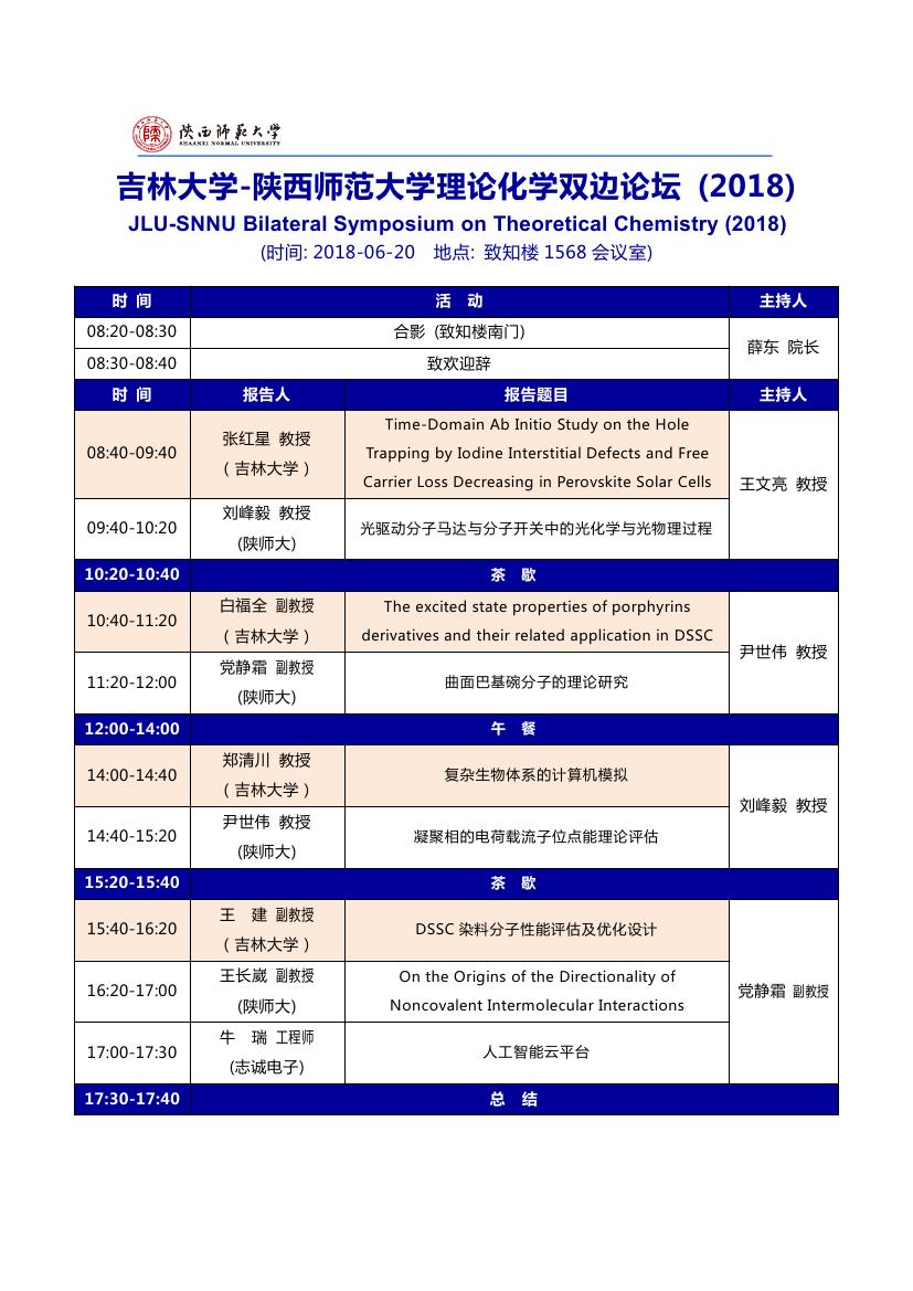吉林大学-小说网 理论化学双边论坛 (2018)