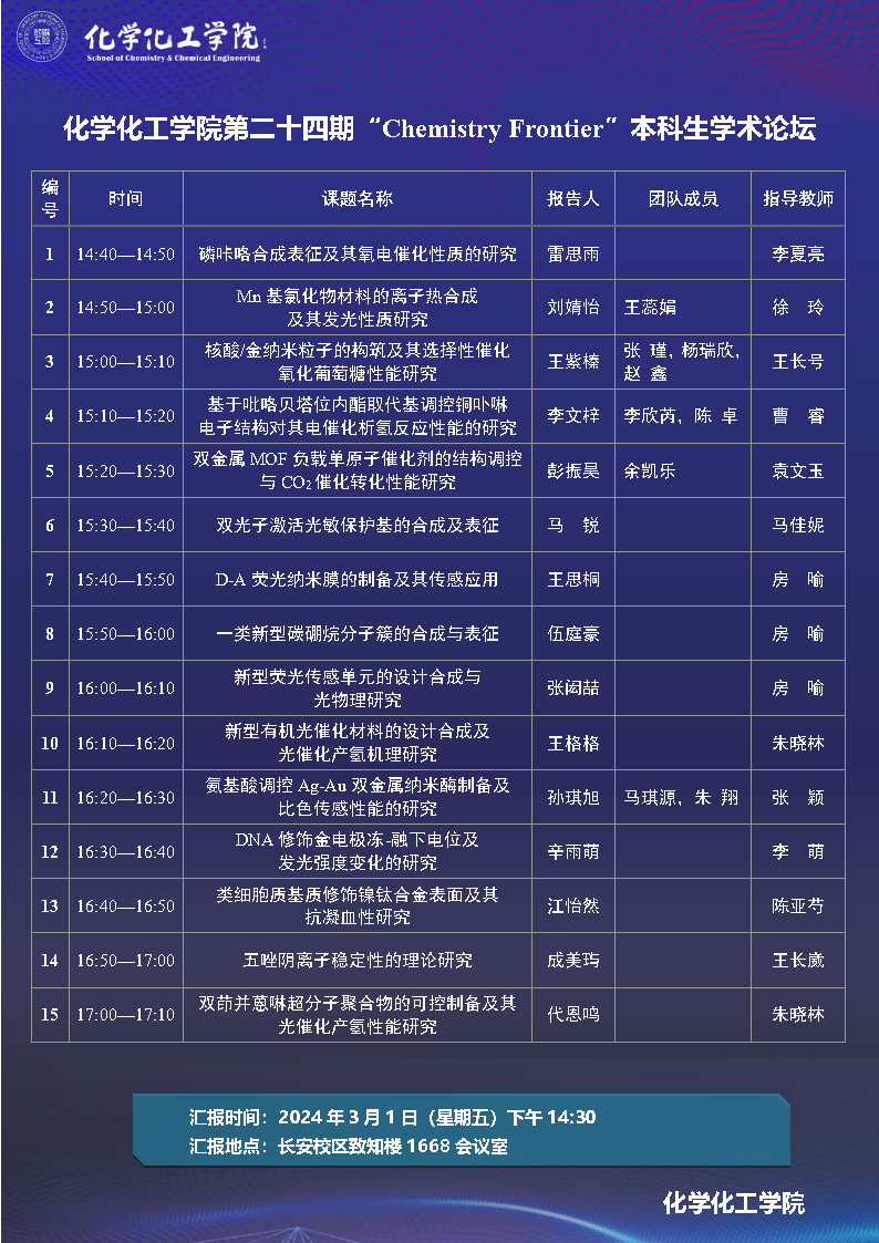 小说网 第二十四期“Chemistry Frontier”本科生学术论坛