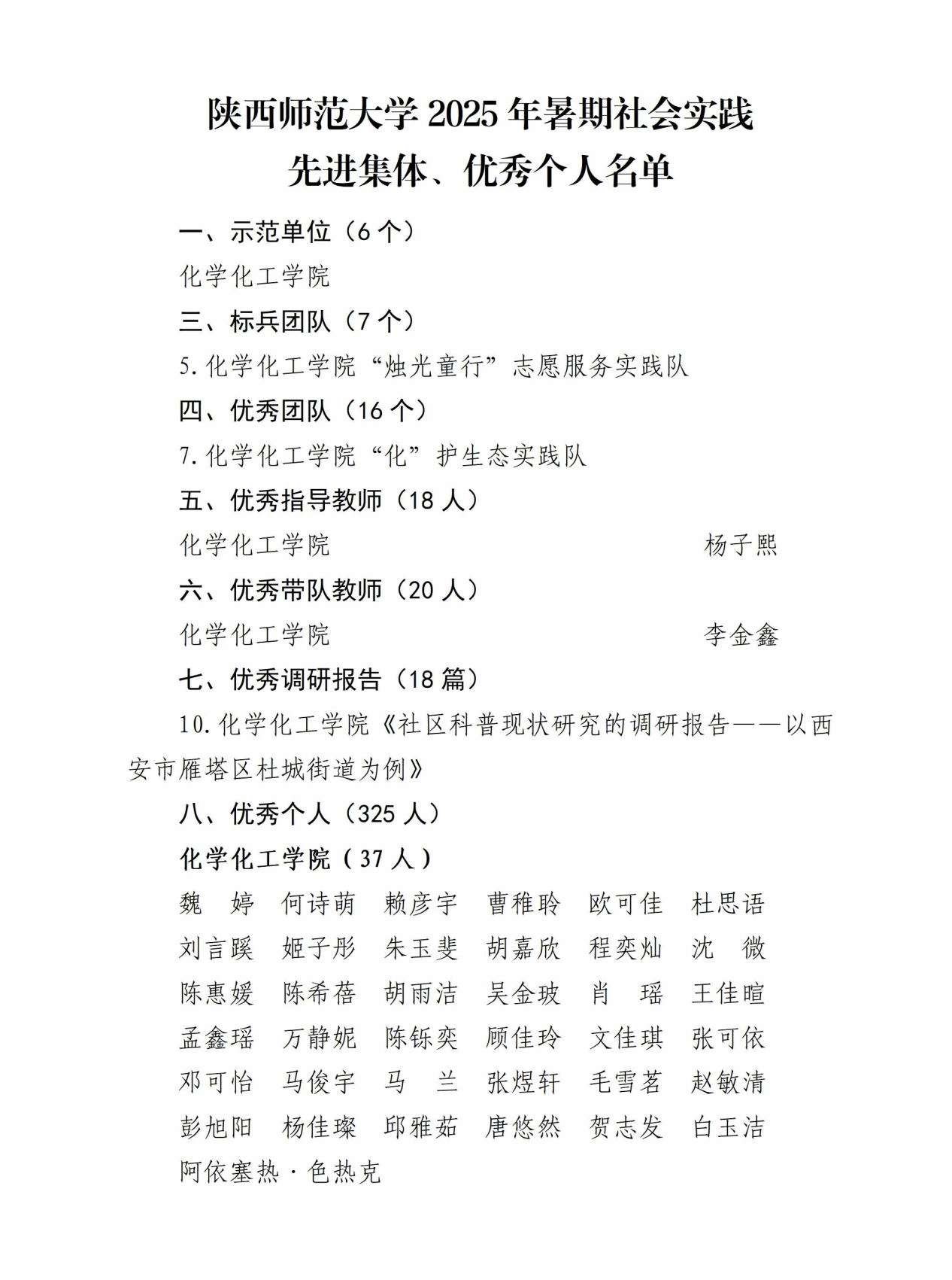 荣获“示范单位”称号,学院“烛光童行”志愿服务实践队获评“标兵团队”,学院“化”护生态实践队获评“优秀团队”。教师层面,杨子熙获评“优秀指导教师”,李金鑫获评“优秀带队教师”;学生层面,《社区科普现状研究的调研报告——以西安市雁塔区杜城街道为例》入选“优秀调研报告”,37名学生凭借在实践中的优异表现荣获“优秀个人”称号。在学校同期开展的边境国门学校“红烛苗圃”专项实践交流活动中,小说网