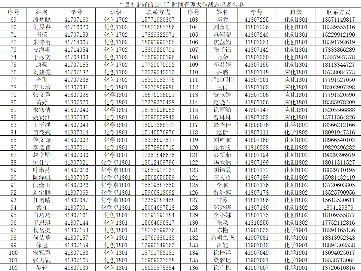 根据《小说网 公开招募小说网 “遇见更好的自己”时间管理大作战活动志愿者的通知》要求,按照小说网 “遇见更好的自己”时间管理大作战活动志愿者招募条件,通过公开招募、自愿报名、择优录取,拟定张丽缘等204名同学为活动志愿者,现予以公示。