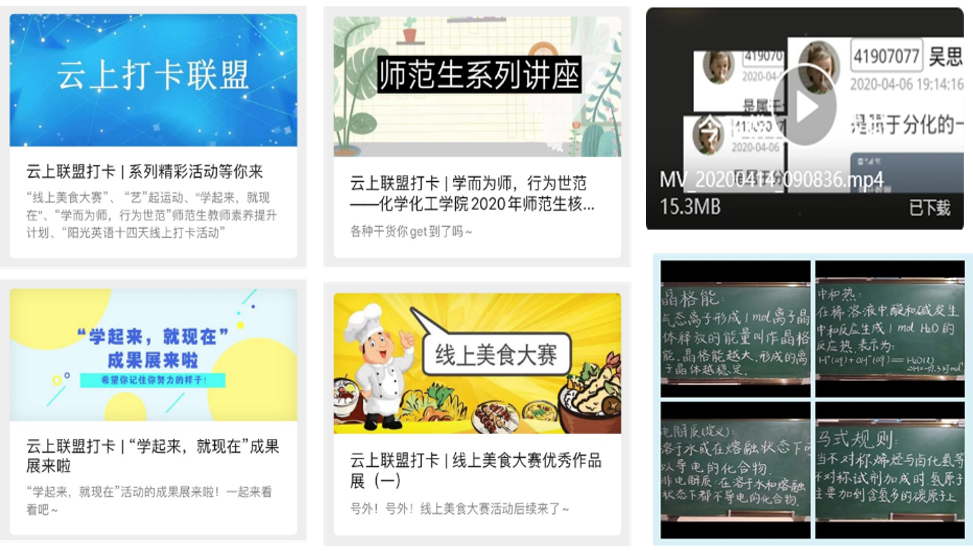 团委结合新冠肺炎疫情防控时势,及时调整工作思路,在云端开展多个主题鲜明、内容丰富的活动,将“疫情”带来的危机与挑战转化为激励、教育、凝聚学生的“契机”,持续不断深化学生的思想建设,激发青年学生的担当意识,带领学院广大青年学生受教育长才干。