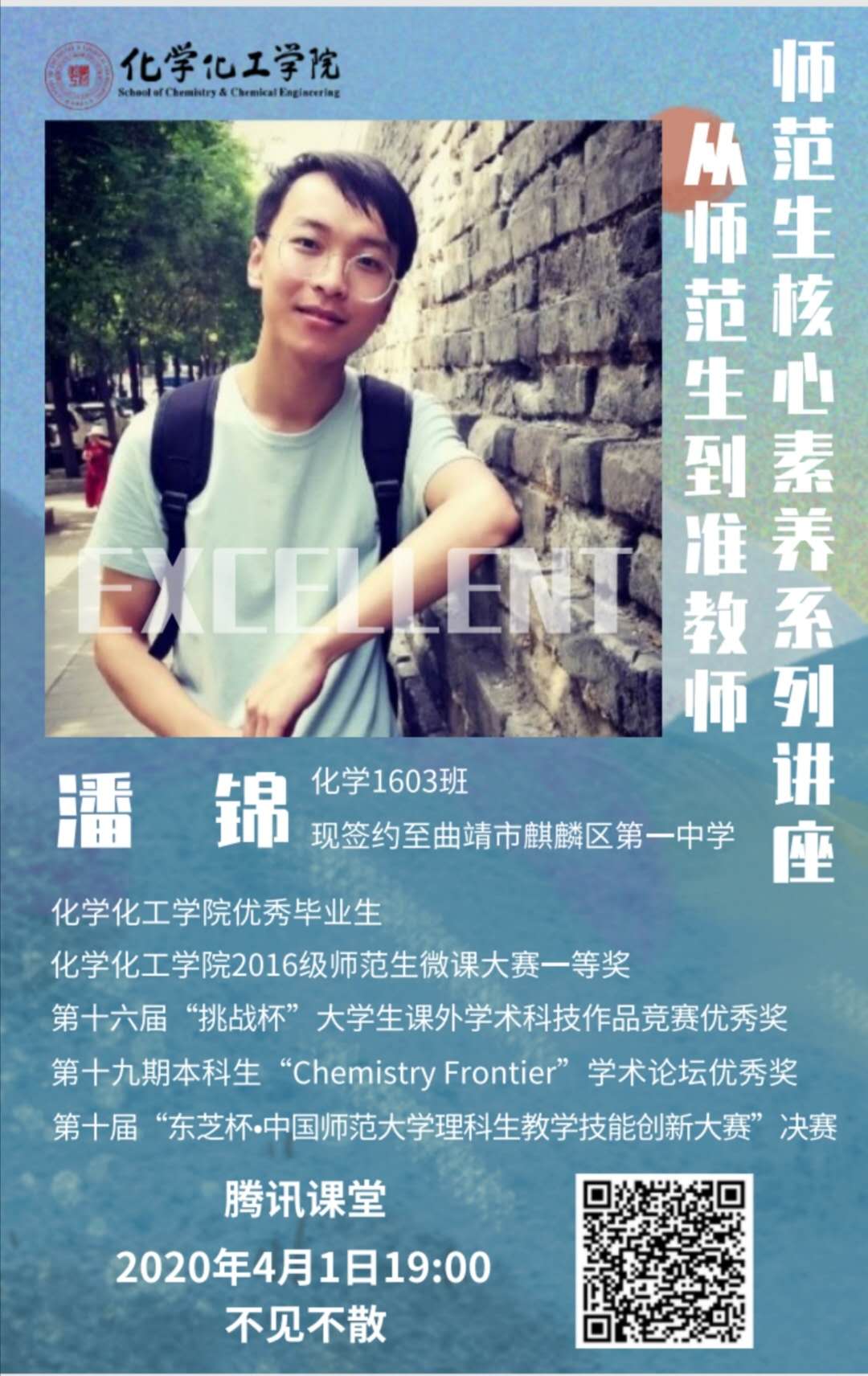 在4月1日的第三次讲座上,潘锦同学向师范生们分享了他从师范生到准教师的宝贵经验。他从对化学学科的认识谈起,介绍了各类化学教材、化学的核心素养以及学习化学的目的,深刻阐述了“理解熟记是基础,灵活运用是上层建筑”这一观点。紧接着,他分享了师范生需要在哪些方面进行自我发展和提升,同时,他也希望在读师范生能够更多地去关注教育发展和改革,能够在日常生活中不断地完善自己。最后,他落脚于现实,向师范生们讲述了自己的求职经历,具体说明了求职前需要准备的材料、就业信息的获取、对自己的认识和考虑、以及学校招聘的具体流程等问题。通过这次讲座,在使同学们对自己如何求职有了更明确认识的同时,也让同学们对自己努力的方向更加坚定。
