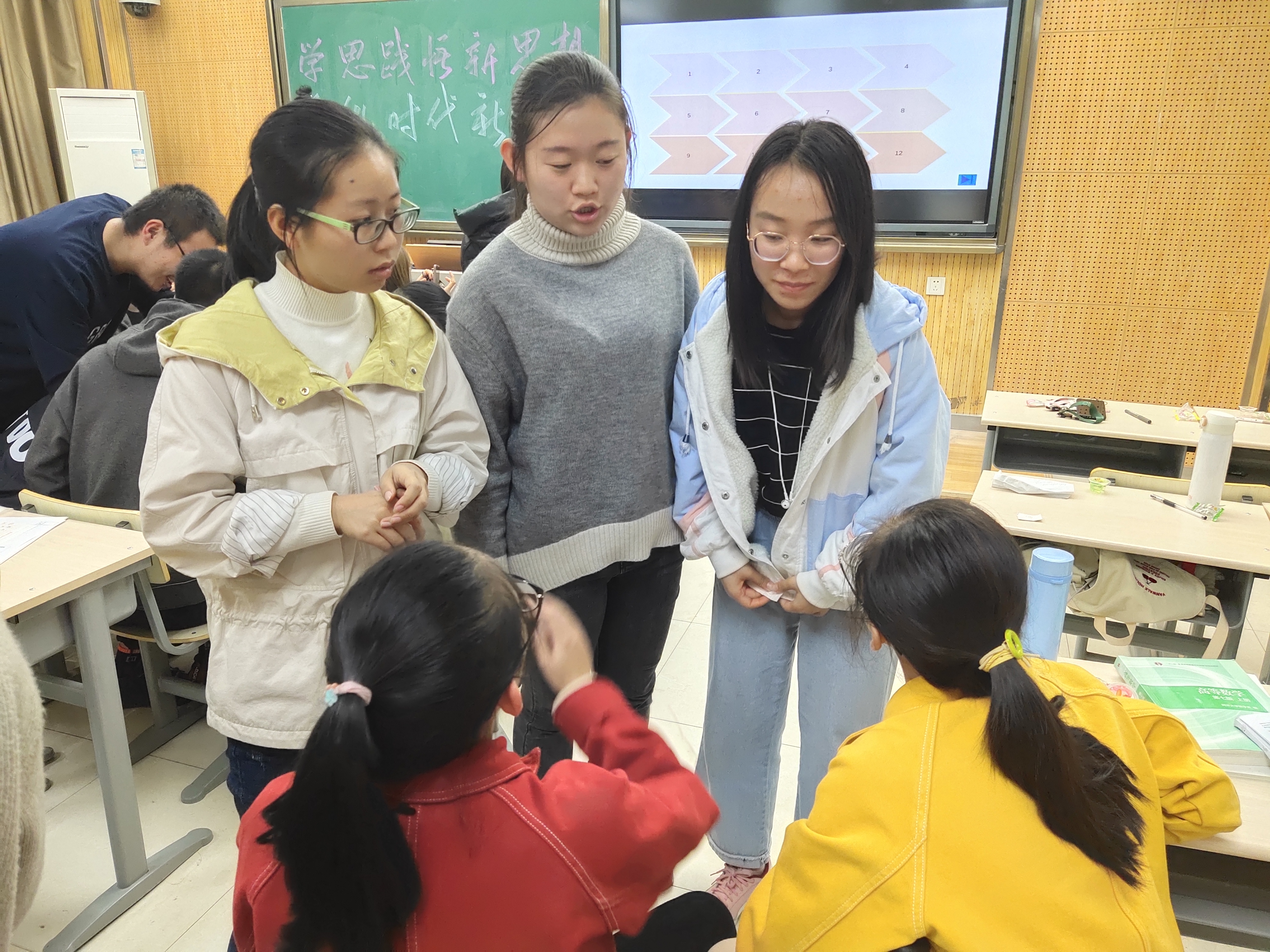 然后,活动进入游戏环节。通过“你来比划我来猜”、“谁是卧底”两个游戏调动了同学们的积极性。游戏中穿插了“一带一路”、“拍苍蝇打老虎”等时代热词,将知识性和趣味性有机地结合起来,加深同学们对这些词汇的认识和理解。现场气氛活跃,同学们参与度高。