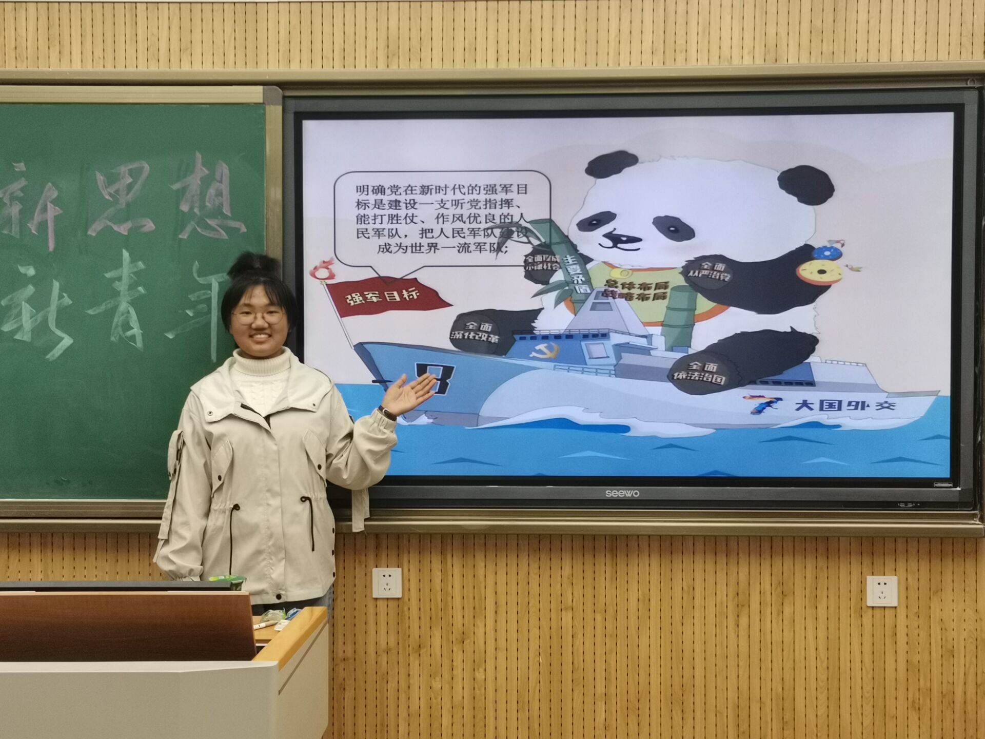 首先,由团支书常凯带领同学们了解习近平新时代中国特色社会主义思想中提出的“八个明确”、“十四个坚持”等一系列新词汇的基本含义,并下发随堂测试卷,检查同学们的学习情况。