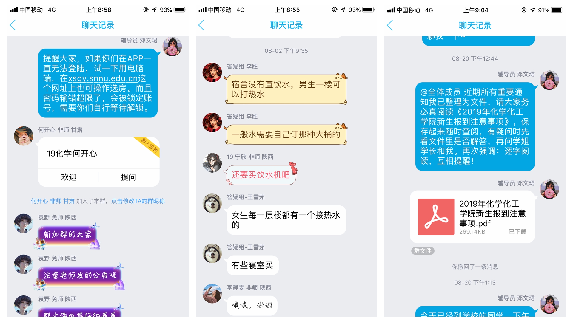暑期还未开始,学院面向高年级学生招募20名优秀志愿者,合理分工、悉心培训,打造“线上线下”双平台,保证迎新工作的顺利开展。一是线上借力社交媒体,使在线答疑与主题推送同步开展。在快速精准解答疑问的同时,及时掌握新生思想动态,做到以导引学,让新生入学前就能找准组织、早知讯息、做好预期,提升线上工作的精准性、全面性、时效性。二是线下发挥朋辈互助,使暖心服务与示范引领共同推进。新生报到前,志愿者美化学工组文化墙,展示学院迎新工作;分装迎新手提袋,装进温暖与真心;设计学院文化衫,绘出青春和活力。新生报到时,志愿者用心提供签到审核、会场引导、秩序维持等服务,以朋辈身份积极进行沟通。军训期间,学院学生会自发组织“送清凉”活动,亲切慰问学弟学妹,发挥标杆作用,让新生感受学院“家”文化的同时感悟“传承”。