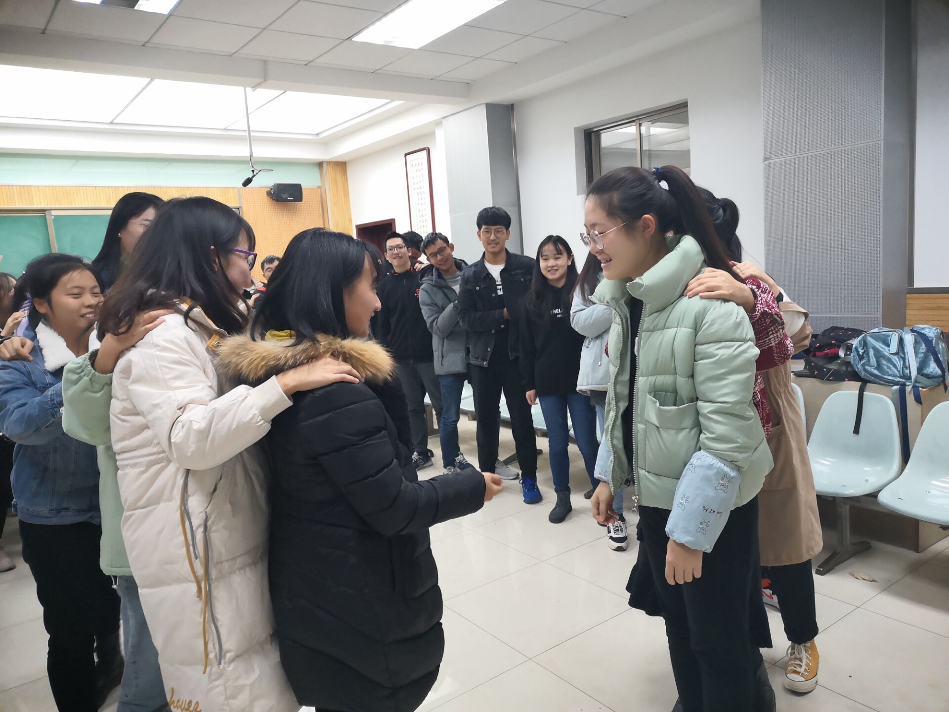 11月17日,化学类1901班于教学八楼举办了团体心理辅导活动。活动以温馨的班级视频相册拉开帷幕,设置“大风吹”“萝卜蹲”等游戏环节。同学们积极融入到游戏中,主动介绍自己、分享感受、展示才艺。其中三人抖肩舞将全场气氛推至高潮,同学们为其欢呼鼓掌。此次团辅活动充满趣味性,具有实效性,让同学们感受到彼此情谊和班级温暖。