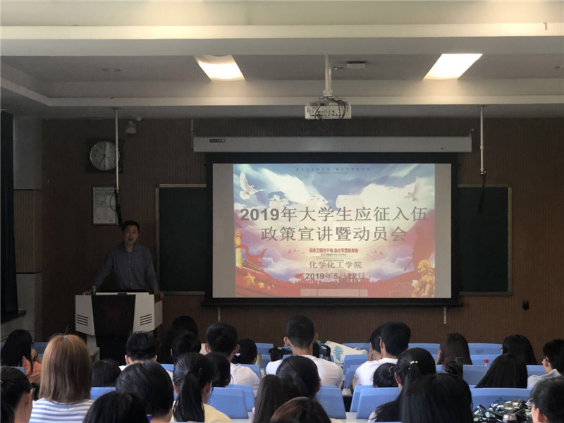 为全面做好学院2019年征兵入伍宣传工作,帮助学生了解相关征兵政策,动员适龄热血青年积极投身军营、报效祖国,5月22日下午16:30,大学生应征入伍政策宣讲会在雁塔校区教学四楼举办,宣讲会邀请到我校武装部国防教育科科长秦维亭,2017级辅导员龙卓华、2018级辅导员翁思洁和100多名学生代表参加。