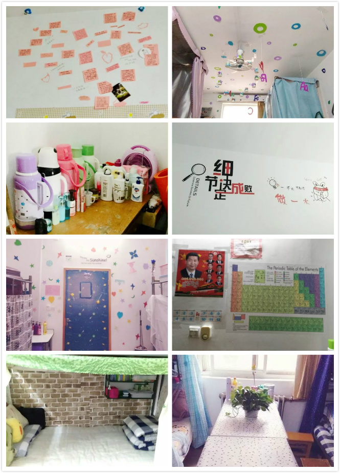 各宿舍成员充分发挥想象力,通过装饰墙壁、天花板,张贴的书画或摄影作品等方式展现宿舍文化,更有部分参赛宿舍创作出了代表宿舍风采的文化作品,包括宿舍专属logo、舍歌、诗歌等,设计作品创意十足,各种新颖的风格主题层出不穷,展现出了当代大学生积极向上的生活态度和无限的创造力。
