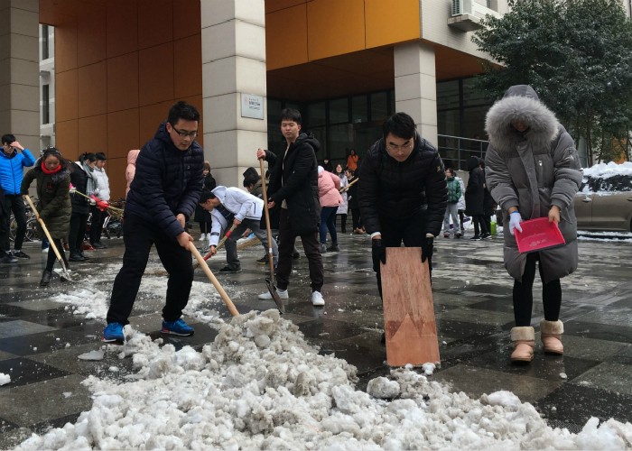 积极响应校团委的号召,配合后勤集团共同做好冬季扫雪及防滑工作,以减少广大师生在生活、工作中因降雪、低温、路面结冰而在出行时造成的不便情况的发生。