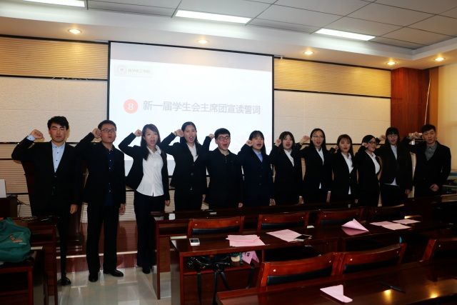 随后,团委副书记张全全宣读了新干部任职名单,并由学生会主席罗娜为新一届学生会干部代表颁发聘书。