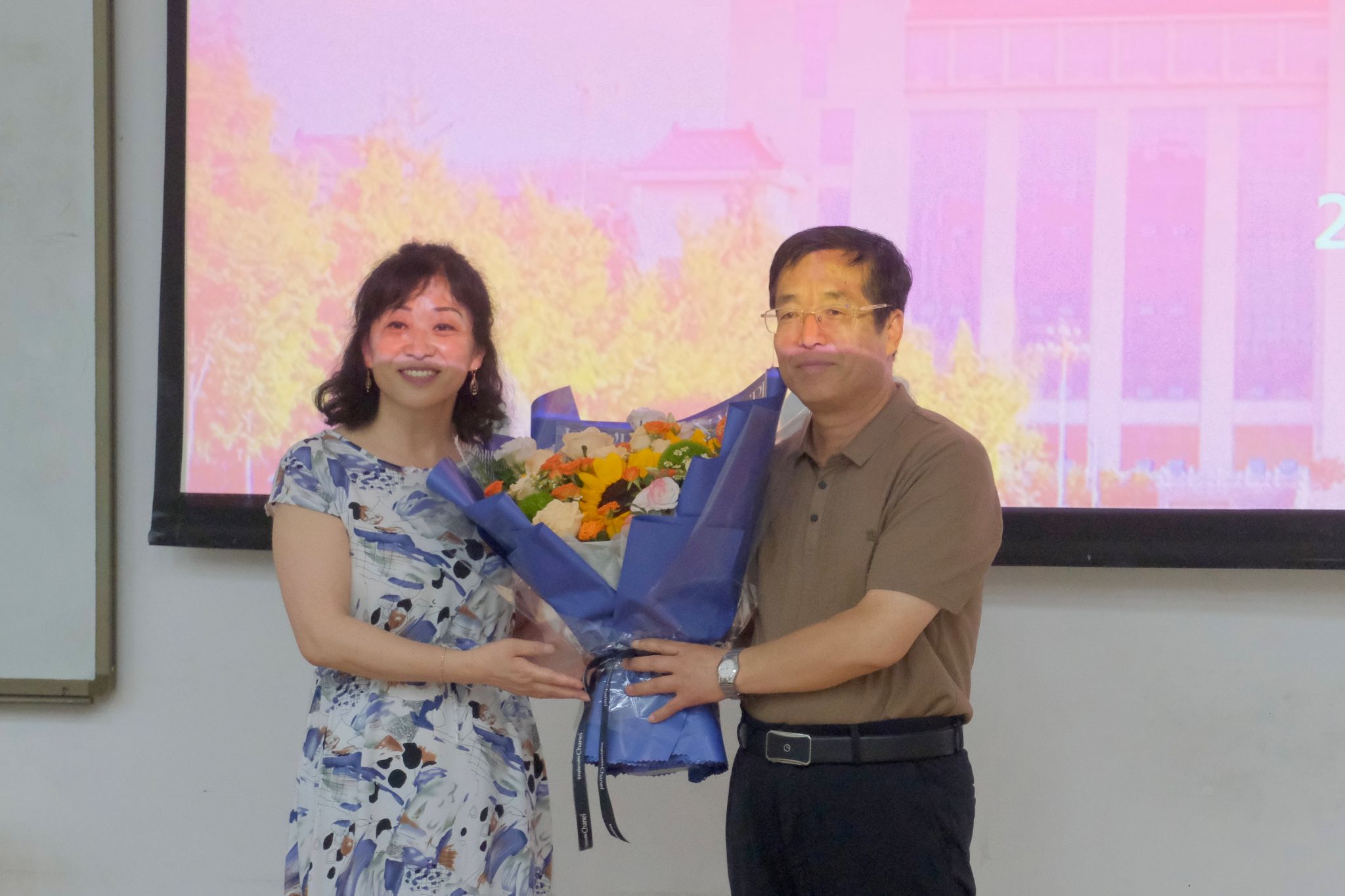 讲座伊始,高玲香作嘉宾介绍并代表学院献花,向王青岗老师致以热烈欢迎和诚挚感谢。