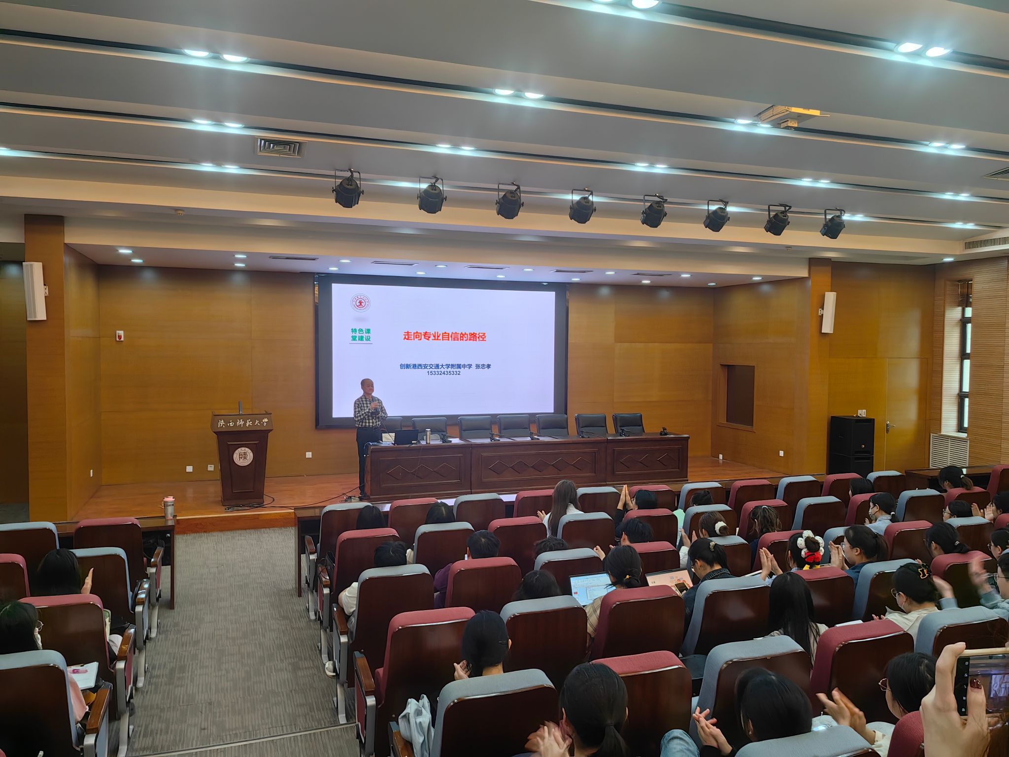 邀请陕西省特级教师、正高级教师、创新港西安交通大学附属中学张忠孝老师做客化学基础教育名师讲堂,为师范生作《让科研成为一种浪漫——走向专业自信的路径》专题报告,学院200余名师范生参加。