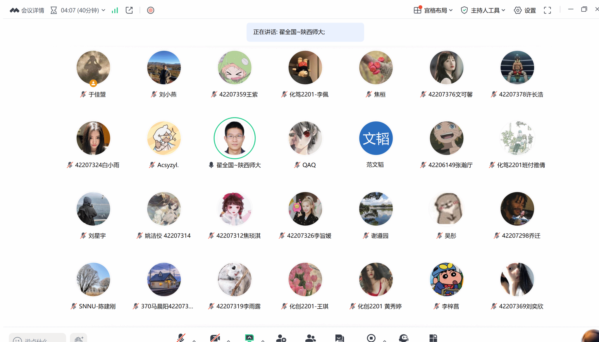 召开线上实习动员会。学院副院长翟全国,党委副书记贾颍辉,实习带队教师焦桓、陈建刚、刘小燕、谢遵园,辅导员刘瑞,教学秘书于佳盟,化创2201班、化笃2201班、应化2201班60余名学生参会。会议由翟全国主持。