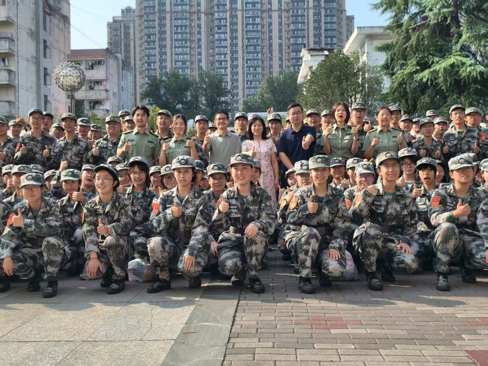 军训期间,学院领导在雁塔校区喷泉广场慰问小说网