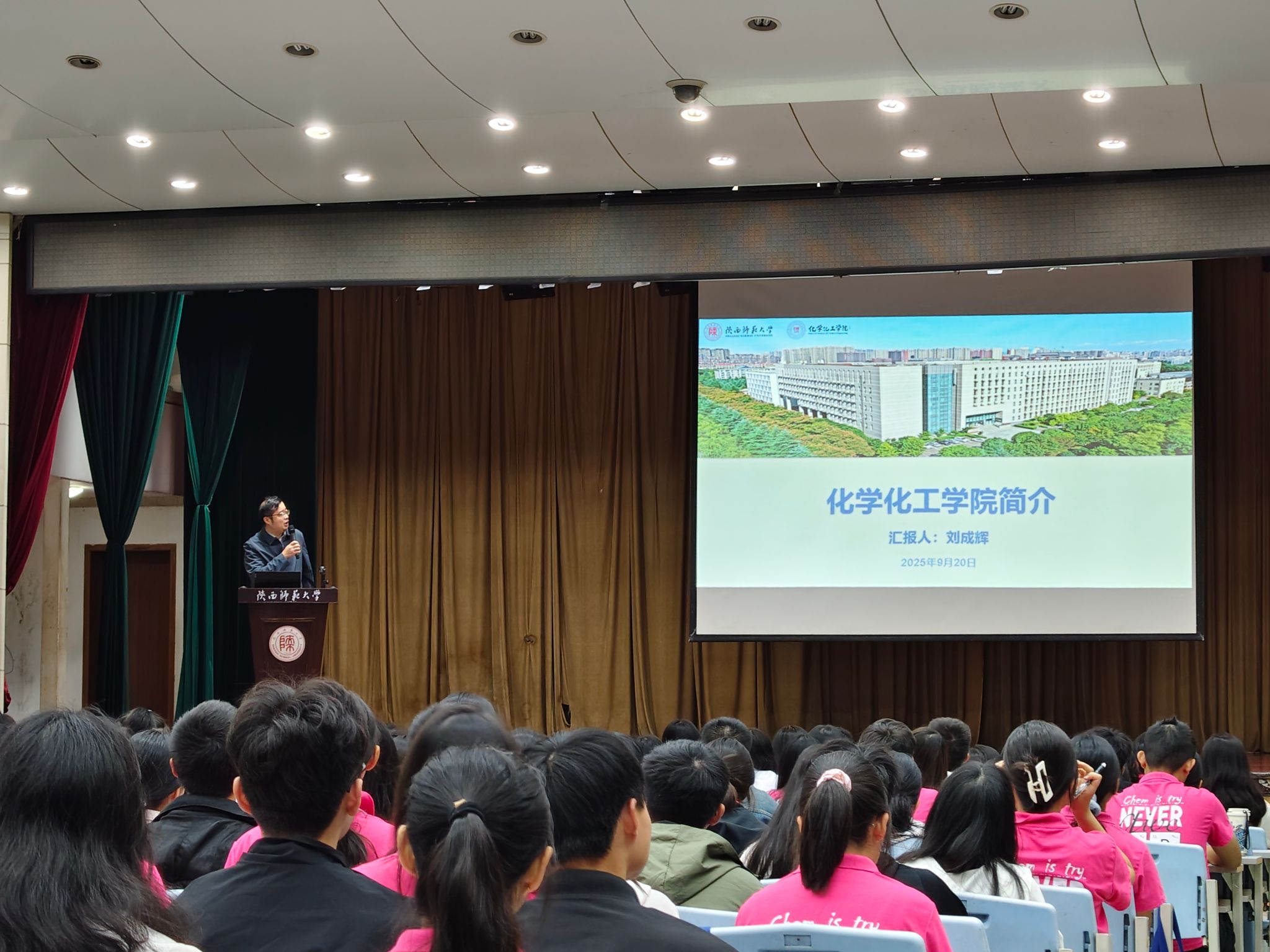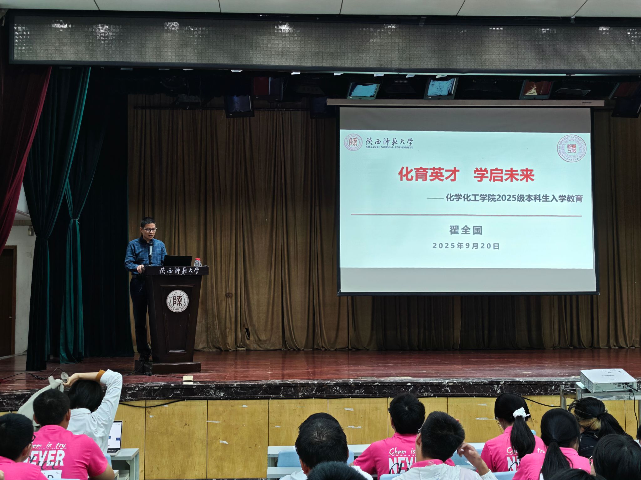 副院长翟全国以“化育英才,学启未来”为主题,为 2025 级本科新生作专业教育讲解,详细介绍化学与应用化学专业的培养目标、课程体系及学习方法,展示专业建设成效。他鼓励新生融入“西部红烛”精神,充分运用网络、人工智能等前沿资源提升学习成效,并以 “日拱一卒无有尽,功不唐捐终入海”寄语新生,助力其明确专业方向、规划学业发展。