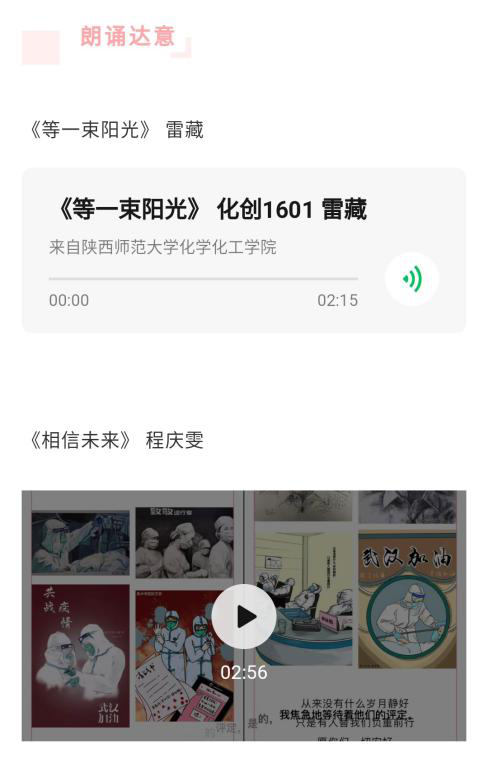 活动中,支部党员一方面以书画助力、诗歌传情、朗诵达意、视频祝福等形式为武汉加油,为中国加油。另一方面通过积极参与家乡疫情防控工作,用行动诠释青年担当。