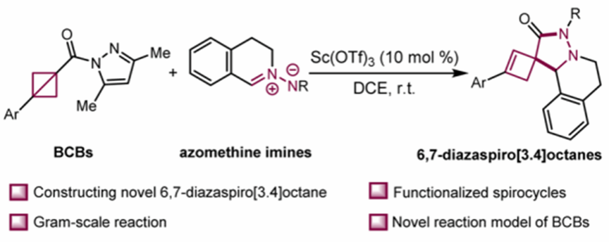 上述成果以Strain-release driven spirocyclization of bicyclo [1.1.0]butanes: access to 6,7-diazaspiro[3.4] octanes为题发表在Chem. Sci., 2025, 16, 12189。