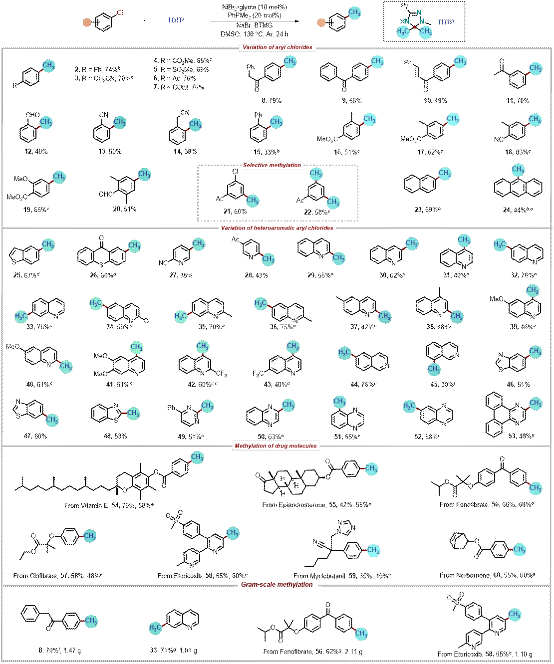 基于这些证据,团队提出了一个合理的催化循环:Ni(II)或Ni(I)物种氧化TDTP产生甲基自由基和Ni(0)中间体;捕获甲基自由基形成的Ni(I)-Me物种与芳基氯发生氧化加成形成Ni(III)物种;随后还原消除得到甲基化产物并再生Ni(I)物种。