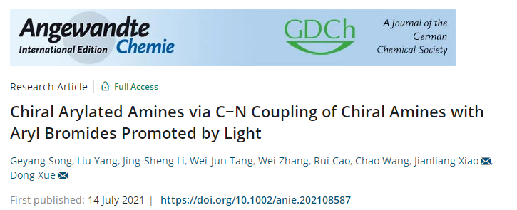 博士研究生宋戈洋,肖建良教授和薛东教授为论文通讯作者。论文信息:Angew. Chem. Int. Ed. 2021, 60, DOI: 10.1002/anie.202108587.(//onlinelibrary.wiley.com/doi/10.1002/anie.202108587)。