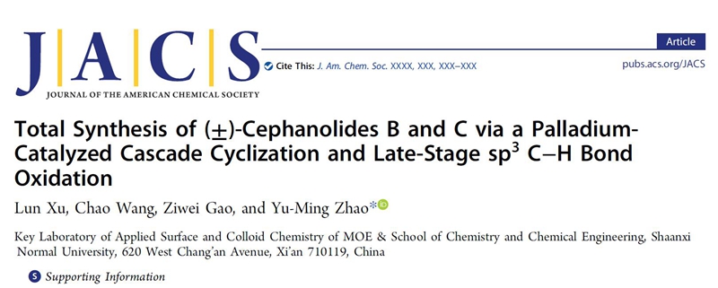 全文详见:Lun Xu, Chao Wang, Ziwei Gao, and Yu-Ming Zhao*; Total Synthesis of (±)-Cephanolides B and C via a Palladium-Catalyzed Cascade Cyclization and Late-Stage sp3 C–H Bond Oxidation; J. Am. Chem. Soc., 2018, ASAP; DOI: 10.1021/jacs.8b03015 (//pubs.acs.org/doi/10.1021/jacs.8b03015).